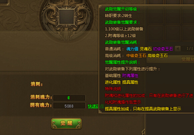 其次就是只有100级以上的武勋装备才可以觉醒哦,并且附魂的等级还需要达到12级呢!
